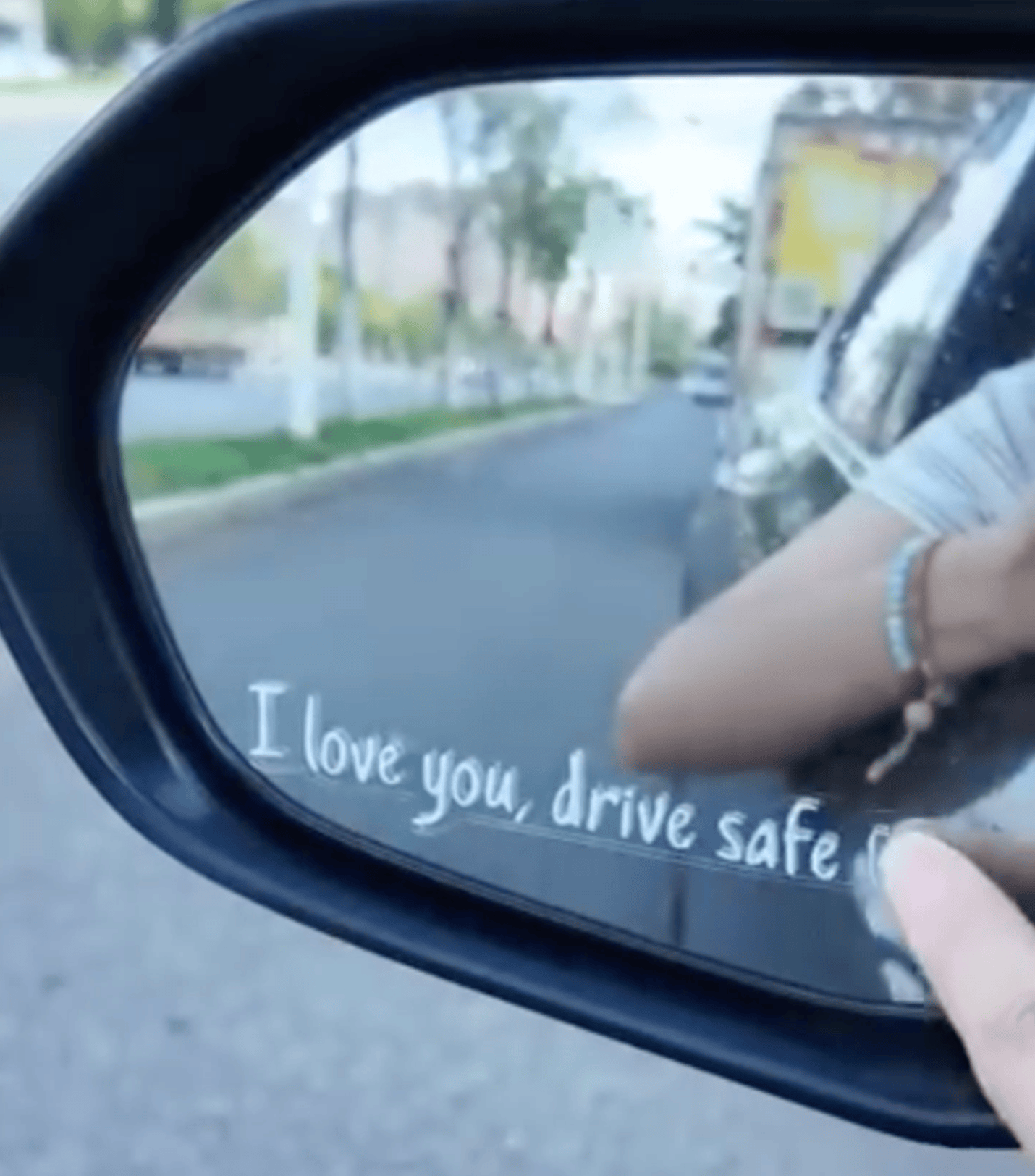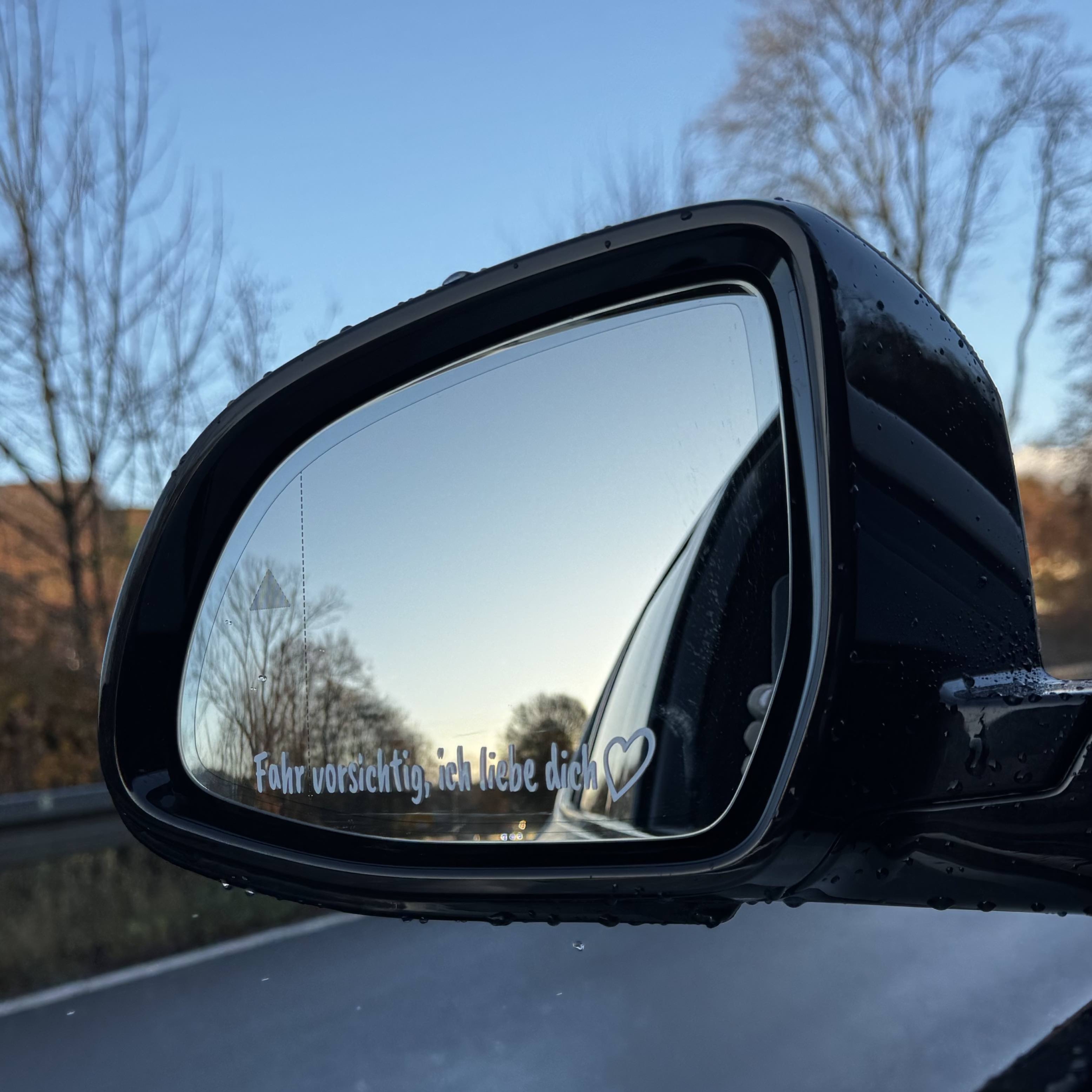 Spiegelaufkleber ‚I love you, drive safe ♥ schwarze Schrift