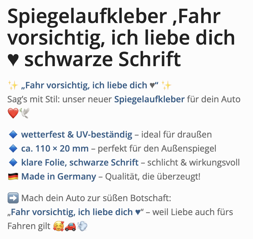 Sag’s mit Stil: unser neuer Spiegelaufkleber für dein Auto ❤️🕊️